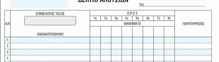 Όλες οι απουσίες των μαθητών/τριών καταχωρίζονται στο Βιβλίο Φοίτησης (απουσιολόγιο) ανά διδακτική ώρα και στην συνέχεια στο πληροφοριακό σύστημα myschool από τον υπεύθυνο (καταχώρησης για κάθε τμήμα) εκπαιδευτικό.